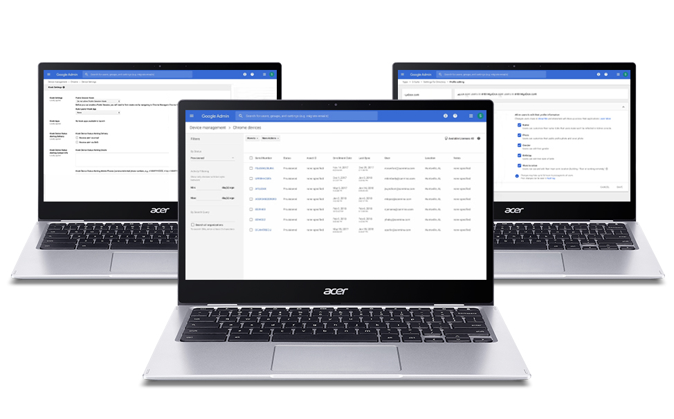 Alle Chrome-Geräte von Acer wurde speziell für die Anforderungen von Unternehmen jeder Größe entwickelt. Sie wurden für die Cloud entwickelt und bieten Mitarbeitern auf Unternehmen zugeschnittene Funktionen für Produktivität, Mobilität und Leistung.